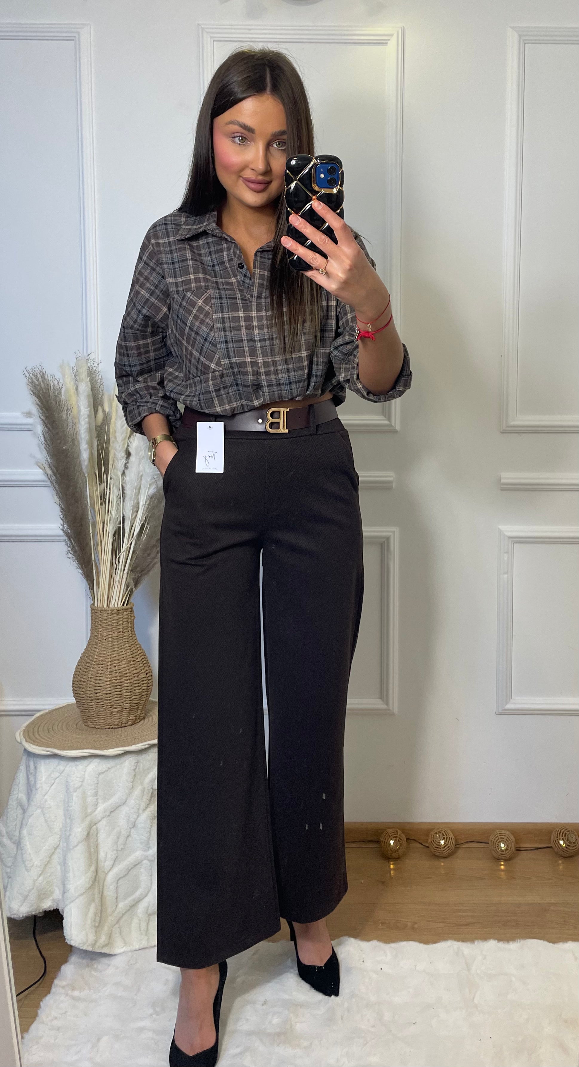 Poczuj pełen komfort i swobodę ruchów w naszych mięciutkich spodniach z szeroką nogawką. Wykonane z przyjemnego w dotyku materiału, który delikatnie otula ciało, zapewniając wygodę przez cały dzień.